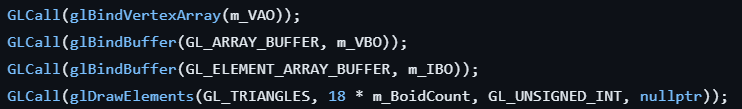 To achieve one draw call for all boids, I need to batch all their vertices into one Vertex Buffer Object and draw them all at once. So that I can do the following: