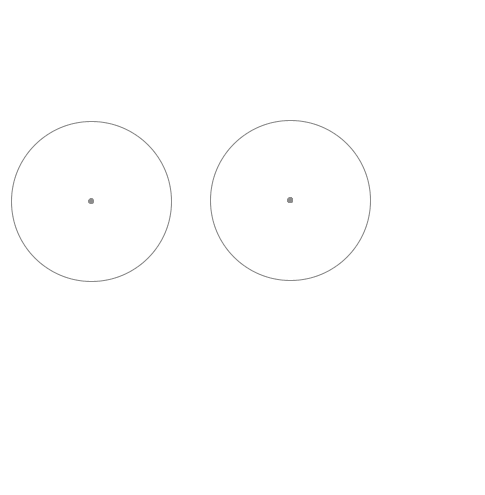 Let’s create two circles in 2D space to represent two musical notes. Then, when they overlap, we draw a line that connects their centers.
